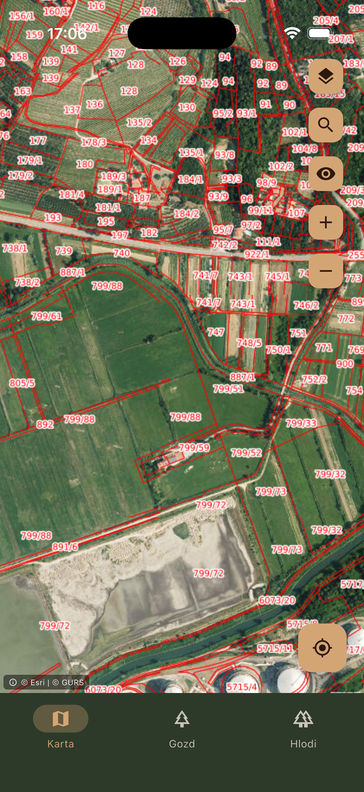 40+ slovenskih geoslojev vključno z ortofoto, katastrom, gozdnimi cestami, zaščitenimi območji in Natura 2000